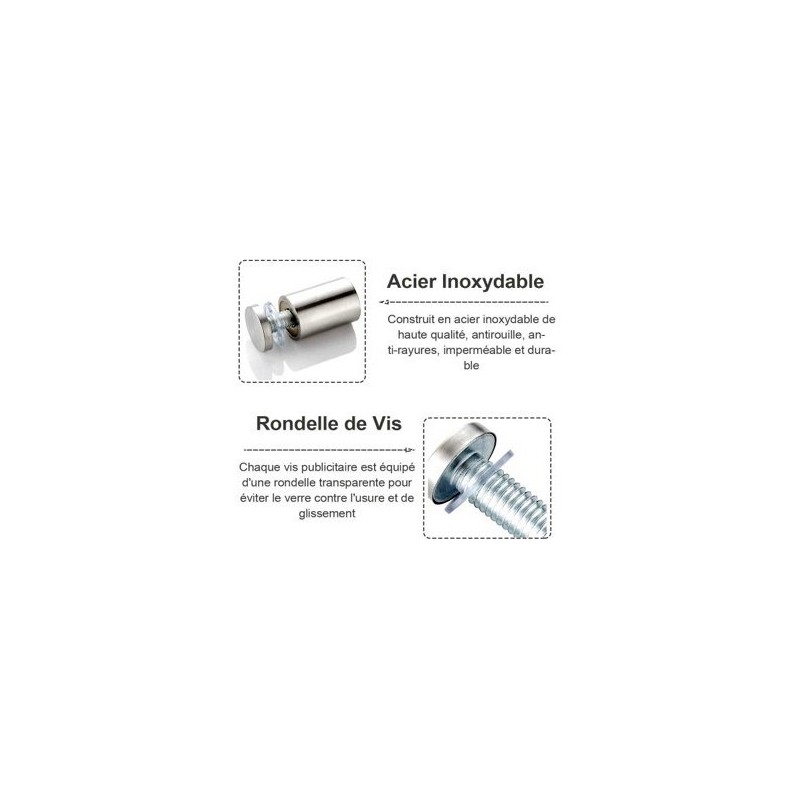 4 Entretoise Mur à Visser Boulon d'Écartement en Verre Clous de Publicité Fixations Montage Pour Verre Acrylique Photos Publicité (19 * 25mm Vis Verre)