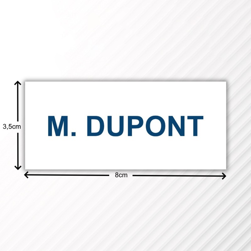 Cette plaque de 80 x 35 mm permet de graver un Nom, puis de se coller sur la surface d'une porte. Marquage industriel, signalétique sécurité, badge.