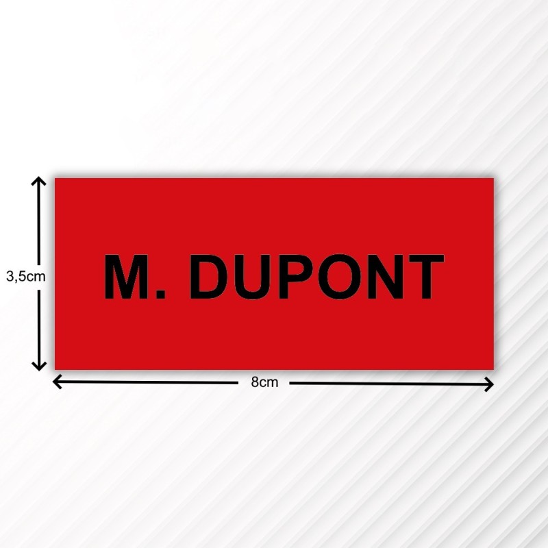 Cette plaque de 80 x 35 mm permet de graver un Nom, puis de se coller sur la surface d'une porte. Marquage industriel, signalétique sécurité, badge.