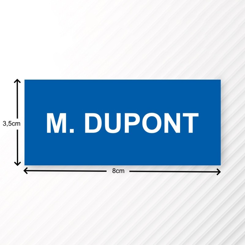 Cette plaque de 80 x 35 mm permet de graver un Nom, puis de se coller sur la surface d'une porte. Marquage industriel, signalétique sécurité, badge.