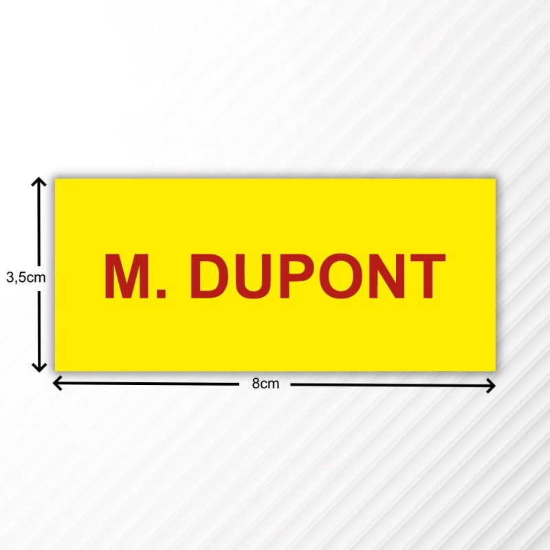 Cette plaque de 80 x 35 mm permet de graver un Nom, puis de se coller sur la surface d'une porte. Marquage industriel, signalétique sécurité, badge.