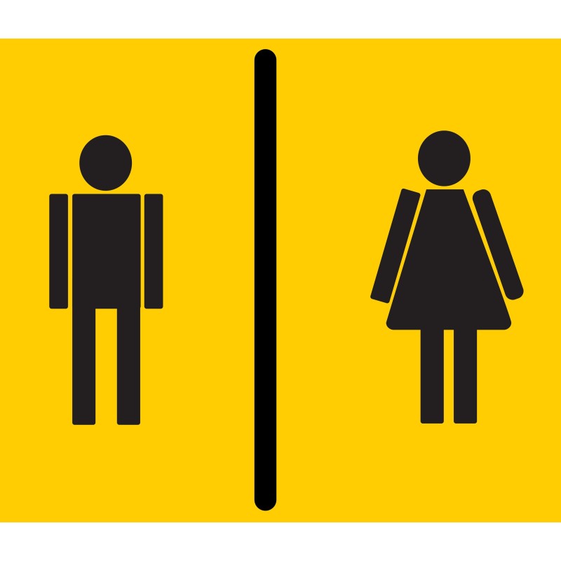 Signalétique WC mixte H & F jaune sur fond noir