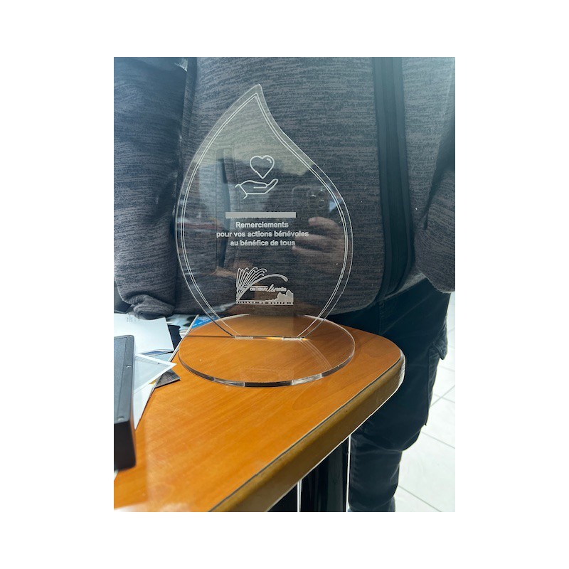 Ce trophée à était réalisé sur un plexiglas de 5 mm avec son socle en 5 mm